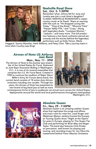 with legendary duets, “Louisiana Woman,” “Jackson,” and many more. This full produc- tion features a live band, authentic period set, comedy and the stories behind the legendary performers such as Dolly Parton, Merle