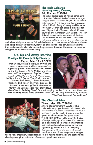 and a beautiful young woman’s lovely high soprano charms every Cabaret audience, and lilting Irish wit tickles funny bones as only an Irish joke can. It is an exhilarat- ing, distinctive blend of Irish music, laughter, and dance which creates an evening designed to please the entire family.